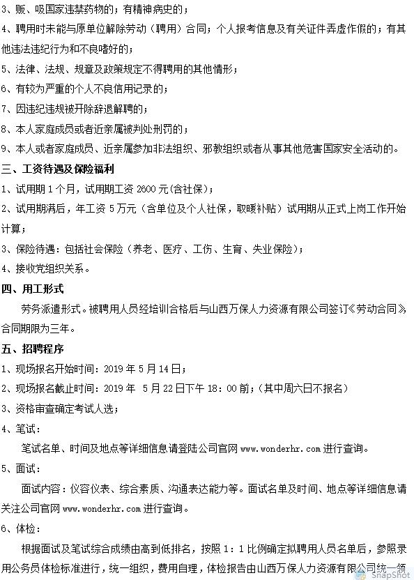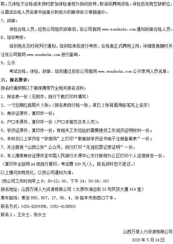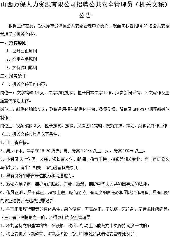 山西萬保人力資源有限公司招聘公共安全管理員(機(jī)關(guān)文秘)公告