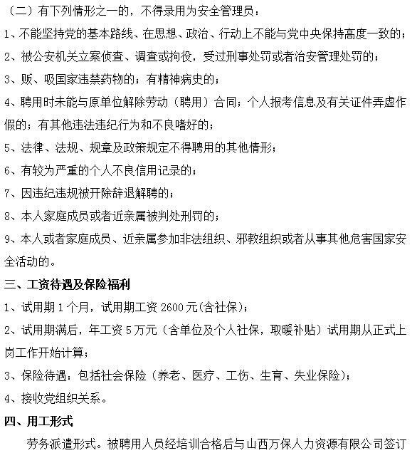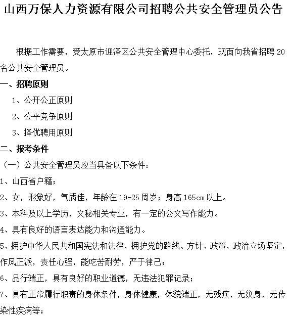 山西萬保人力資源有限公司招聘公共安全管理員公告